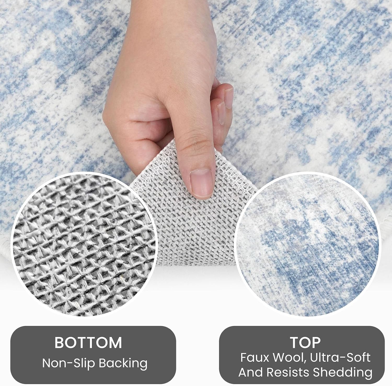 - Modern Abstract Printed Design: Transform your home with the modern abstract rug, a perfect blend of art and functionality. Printed with a modern abstract pattern, Its dynamic splashes of light blue,gray, and white hues add a vibrant touch to any room
